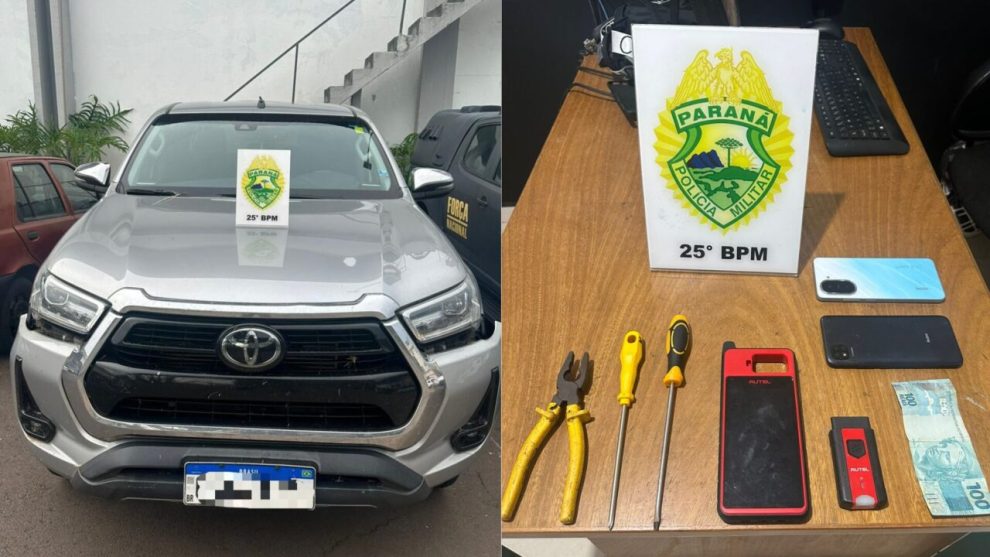 Três caminhonetes Toyota Hilux foram furtadas em um intervalo de menos de seis horas na noite desta quarta-feira, 18, nas cidades de Cianorte e Umuarama, no noroeste do Paraná. Dois veículos foram recuperados pelas forças de segurança e dois suspeitos presos. A terceira caminhonete cruzou a fronteira em direção ao Paraguai.